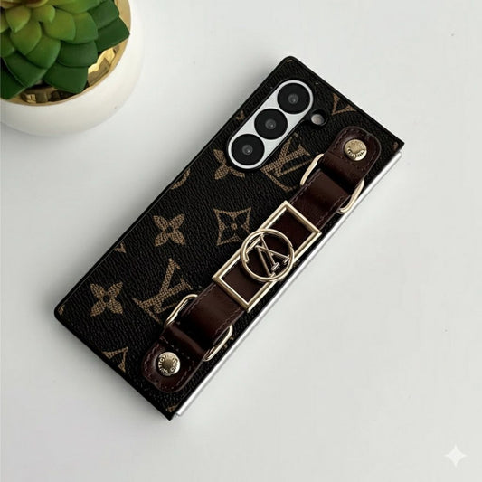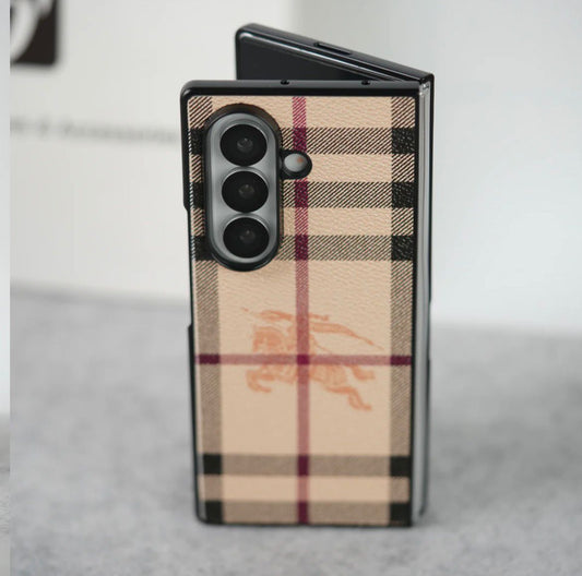 Classic Checkered Leather Case for Z Fold – Timeless British Elegance